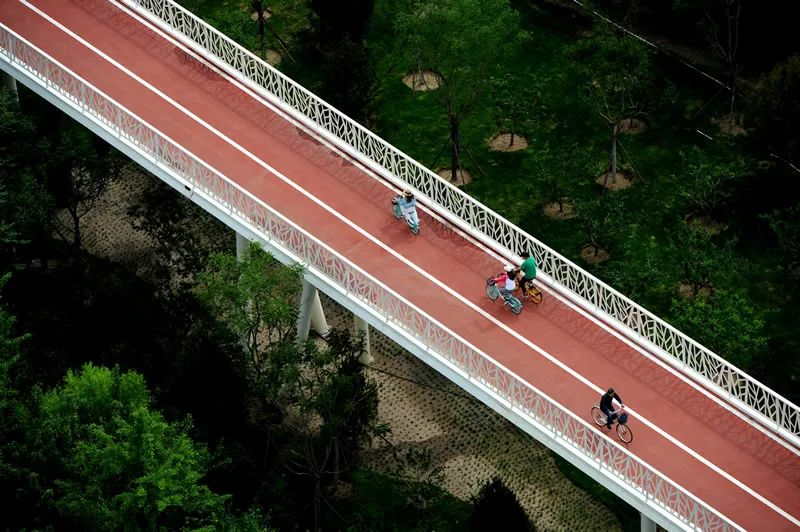 圖為太原汾河岸畔的濱河自行車道