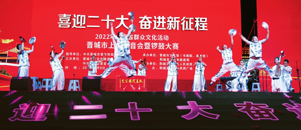 黨的二十大即將召開,三晉兒女歡欣鼓舞,充滿期待。晉城市上黨八音會在鑼鈸并舉、激越高昂的聲樂中,將黨的二十大召開的喜訊,傳遍澤州大地;運城市旗袍展演秀出紅紅火火的幸福日子及喜慶之情;臨汾市鑼鼓大賽奏響時代最強音,禮贊新時代……三晉大地載歌載舞,一系列主題文化活動都表達著對黨的二十大的翹首企盼,及對祖國更加繁榮昌盛的祝福之情。