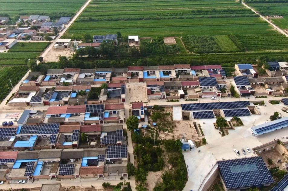 家家農戶屋頂上藍色光伏板閃閃發光