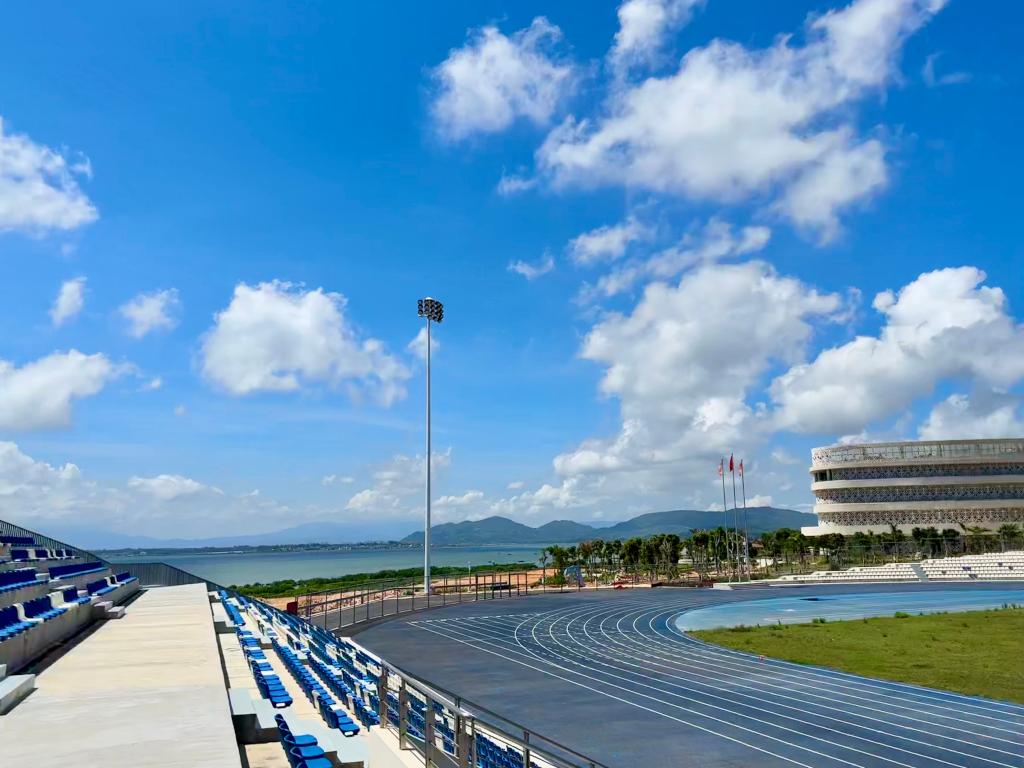 6月27日在海南陵水拍攝的國際教育創(chuàng)新試驗(yàn)區(qū)園區(qū)內(nèi)的運(yùn)動場。新華社記者 劉勇貞 攝