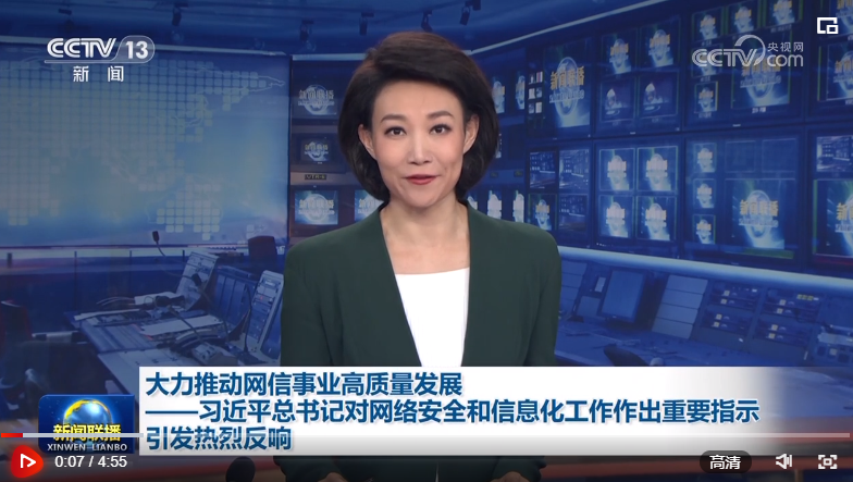央視網消息(新聞聯播):習近平總書記近日對網絡安全和信息化工作作出重要指示,在社會各界引發熱烈反響,大家表示,要堅持以習近平新時代中國特色社會主義思想為指導,大力推動網信事業高質量發展,以網絡強國建設新成效為全面建設社會主義現代化國家、全面推進中華民族偉大復興作出新貢獻。