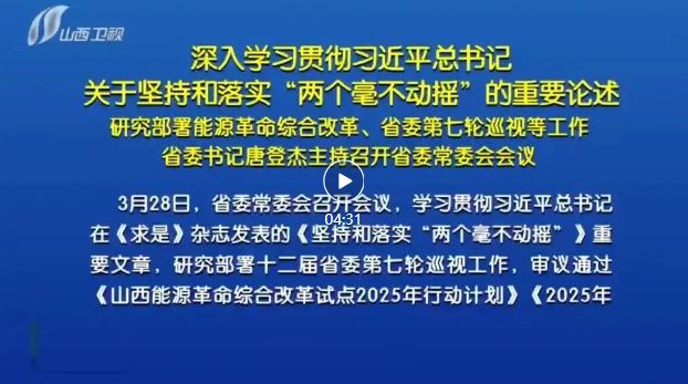 山西日報報道 3月28日,省委常委會召開會議,學習貫徹習近平總書記在《求是》雜志發表的《堅持和落實“兩個毫不動搖”》重要文章,研究部署十二屆省委第七輪巡視工作,審議通過《山西能源革命綜合改革試點2025年行動計劃》《2025年省委黨內法規制定計劃》。省委書記唐登杰主持會議。