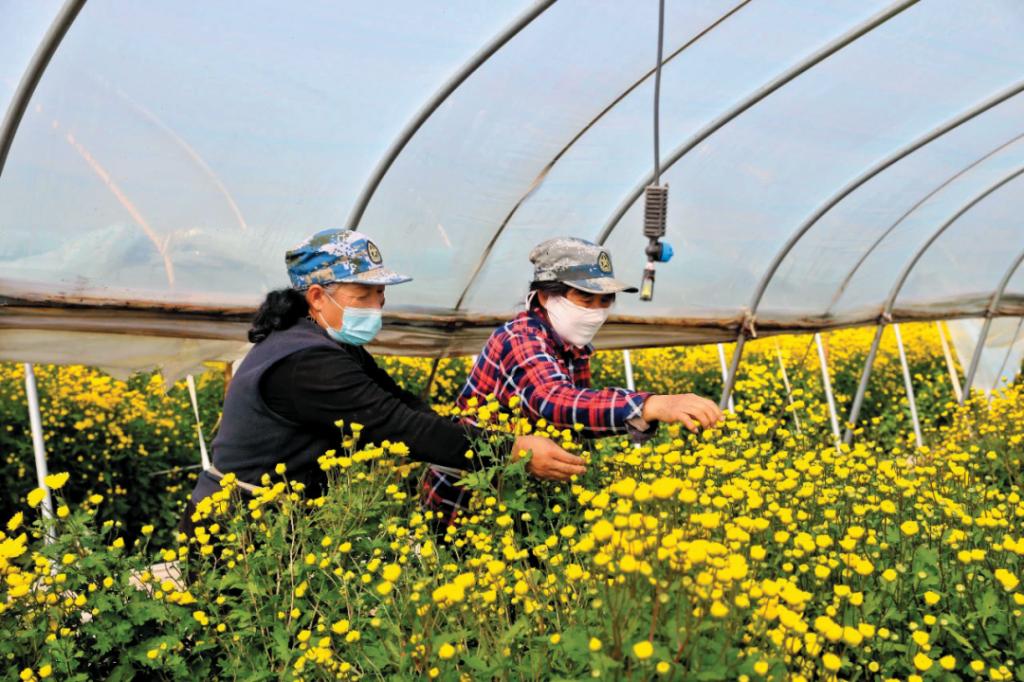 忻口,因忻口戰役而名留史冊。而今,忻府區忻口鎮20個行政村齊心協力抱團種起了皇菊。眼下正是菊花盛開的時節,66座移動式大棚里,滿眼金黃,煞是喜人。