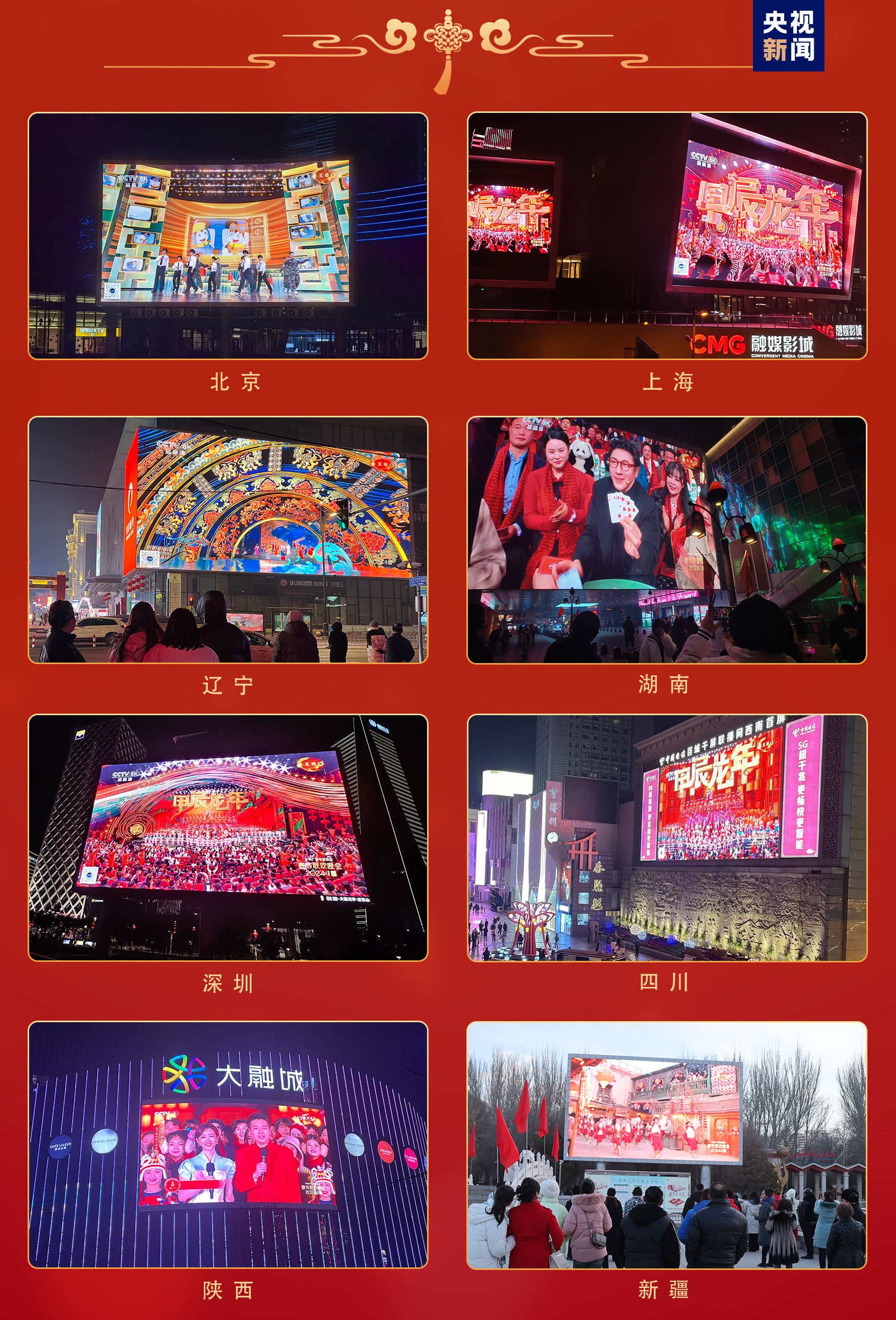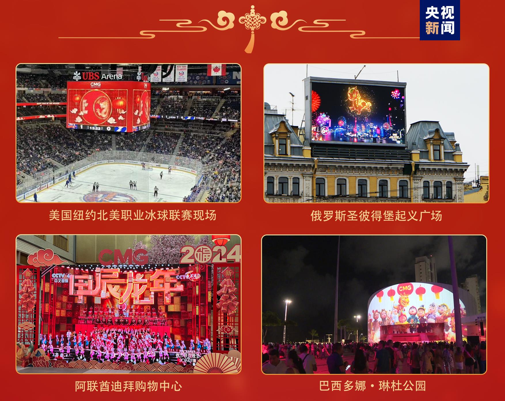 全球看春晚。作為聯(lián)合國大會(huì)將農(nóng)歷新年列為聯(lián)合國假日后的首個(gè)新年,總臺(tái)主辦的“春晚序曲 全球看春晚”活動(dòng)在美國、肯尼亞、瑞士等多國舉辦近40場;各大洲49個(gè)國家、90座城市的3000余塊公共大屏直播和宣介總臺(tái)春晚;世界最高建筑迪拜哈利法塔、非洲第一高樓埃及新行政首都中央商務(wù)區(qū)標(biāo)志塔、瑞典斯德哥爾摩市中心國王花園廣場、巴西多娜·琳杜公園等多個(gè)全球地標(biāo)性建筑上演春晚燈光秀……靈動(dòng)吉祥的“龍辰辰”將中國新年的美好祝愿傳遍全球。