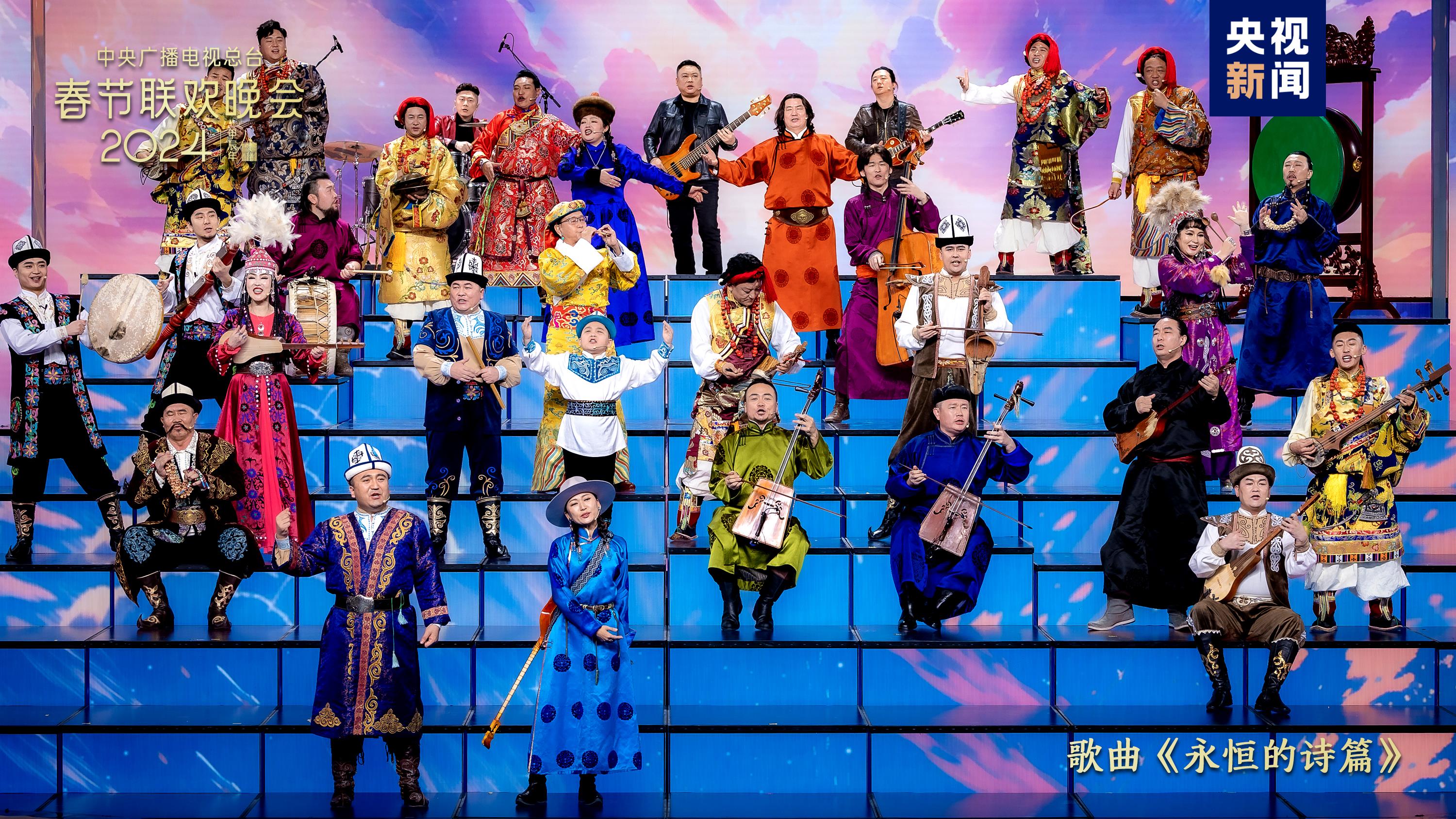 同根同源、同心同愿。歌曲《禮序》中,古巨基、蘇有朋、宋佳、麥嘉欣與來自海峽兩岸暨香港、澳門的小朋友們通過“禮”這一中華民族共通的文化符號(hào),唱出攜手同心、共赴團(tuán)圓的美好期許。《永恒的詩篇》傳唱柯爾克孜族、蒙古族、藏族的民族史詩,蒼勁有力,響徹廣袤大地,書寫遼闊土地上的生生不息。
