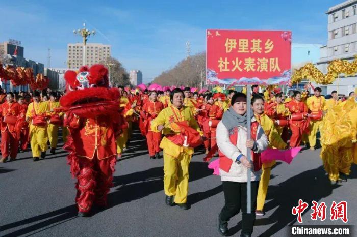 舞龍、舞獅、腰鼓、大頭娃娃、燈籠……2月12日,農歷正月初三,和田市舉行2024年“龍騰盛世·春滿萬家”社火活動,來自和田市各鄉鎮、街道、文旅系統的14支社火表演隊早早在團結廣場集結,震天的鑼鼓、喜慶的秧歌、特色的艾德萊斯、爆火的《科目三》讓各族群眾大飽眼福,感受到了濃濃的年味。