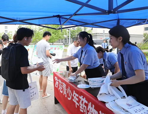 活動現場,檢察干警針對青少年學生好奇心強、辨別是非能力弱、對麻精藥品濫用的危害性缺乏認知容易受到侵襲的特點,結合宣傳展板,為廣大師生耐心講解了麻精藥品的概念以及如何辨別和抵制麻精藥品濫用,通過引導同學們近距離觀察仿真毒品樣品,重點對偽裝成“可口可樂”、“減肥藥”等麻精藥品以及各類“毒品零食”等新型毒品做介紹,引導同學們學會識別毒品陷阱,讓學生直觀認識到濫用麻精藥品的危害。此外,本次活動還開展禁毒知識快問快答小游戲與同學們進行互動,通過向在校師生發放禁毒宣傳資料、檢察官小熊以及印有禁毒標語的宣傳小禮品。希望通過受教師生向身邊的親朋好友形成輻射式宣傳,營造全民關注和全民拒毒濃厚氛圍。