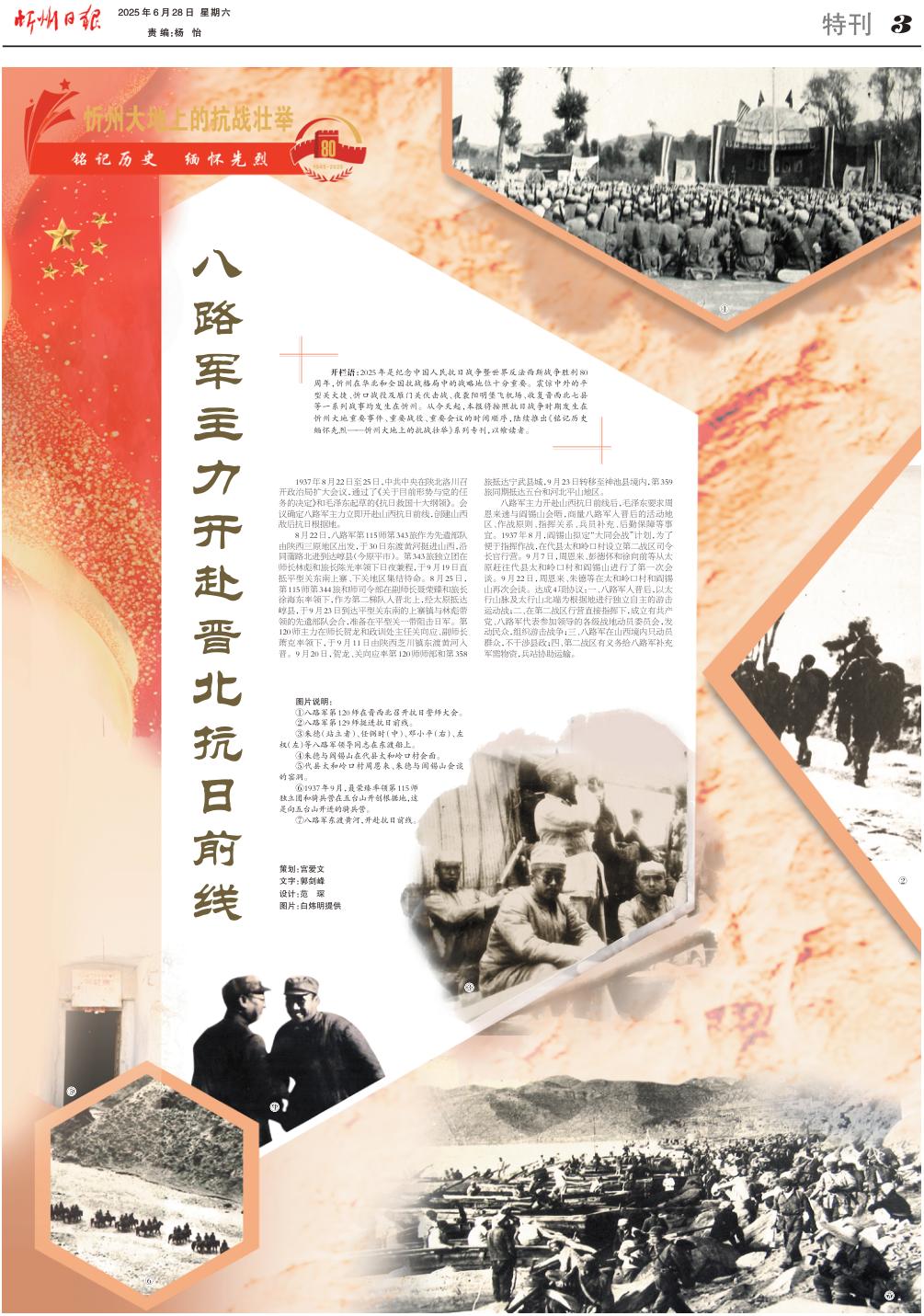 1937年8月22日至25日,中共中央在陜北洛川召開政治局擴大會議,通過了《關于目前形勢與黨的任務的決定》和毛澤東起草的《抗日救國十大綱領》。會議確定八路軍主力立即開赴山西抗日前線,創建山西敵后抗日根據地。