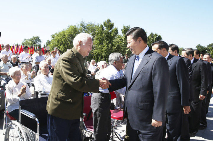 2014年9月3日上午,習近平與抗戰老戰士和老同志、抗戰烈士親屬、為抗戰勝利作出貢獻的國際友人遺屬代表親切會面。