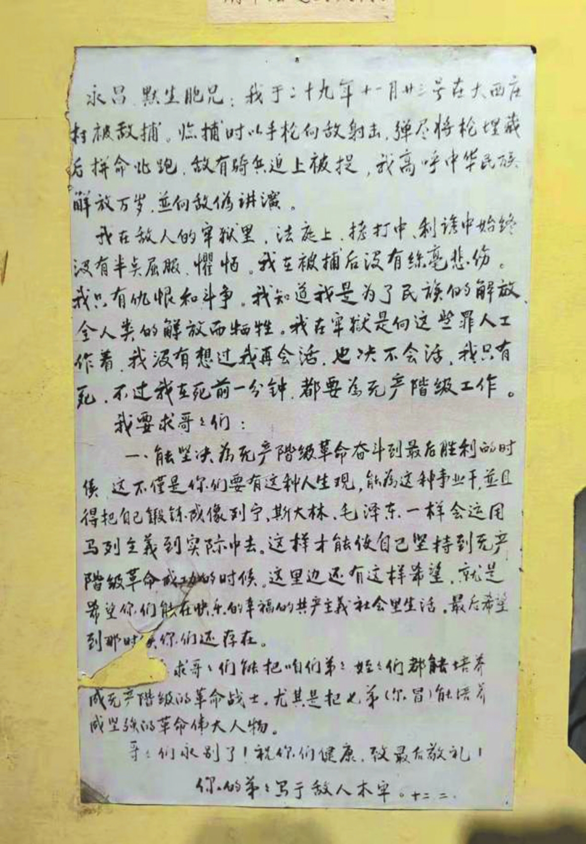 遺書(shū)中,表達(dá)了對(duì)抗戰(zhàn)勝利的必勝信心;直言“我死了是為國(guó)家為民族而犧牲”,以生命詮釋對(duì)黨的忠誠(chéng),展現(xiàn)了共產(chǎn)黨人堅(jiān)貞不屈的崇高革命精神與為共產(chǎn)主義奮斗終身的犧牲精神。